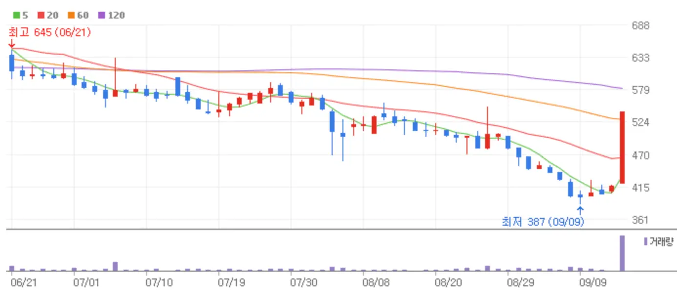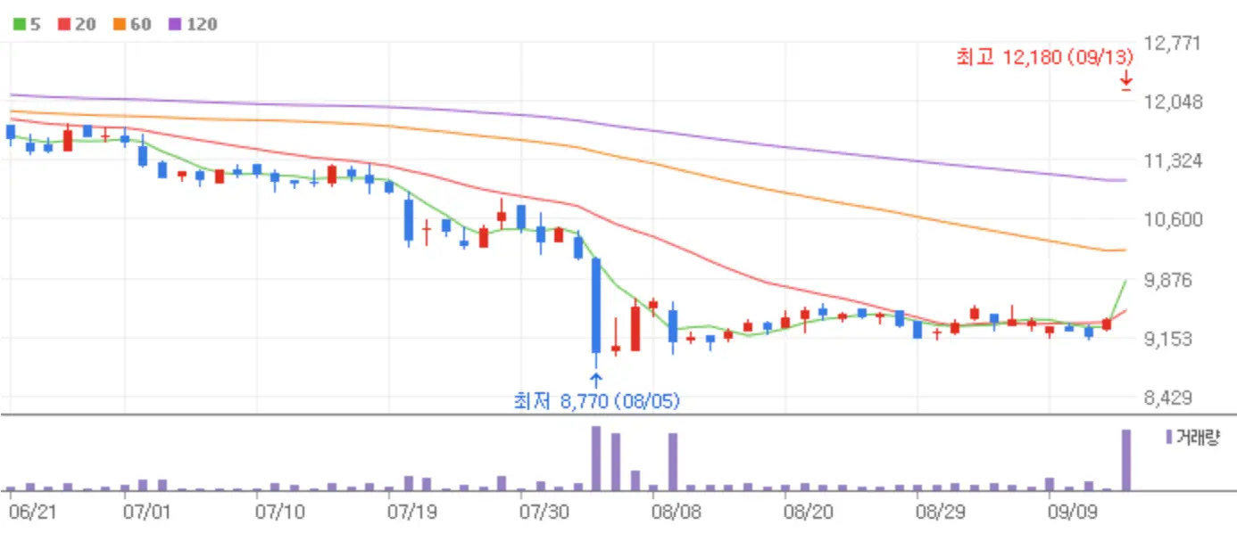 금리인하의 호재를 앞둔 9월 13일 코스피와 코스닥 시장은 보합으로 마감했습니다. 9월의 이벤트를 앞두고 눈치보기 장세가 이어졌는데요 9월 13일 상한가에 안착한 종목들에 대해 알아보도록 하겠습니다.