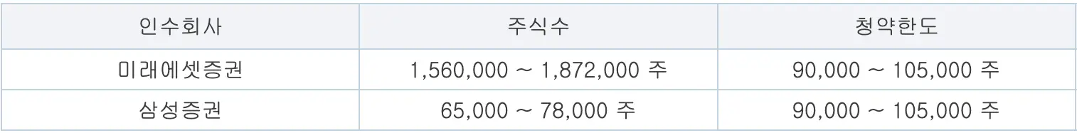 미래에셋증권과 삼성증권에서 진행하며 배정의 90% 이상이 미래에셋증권으로 몰렸습니다.