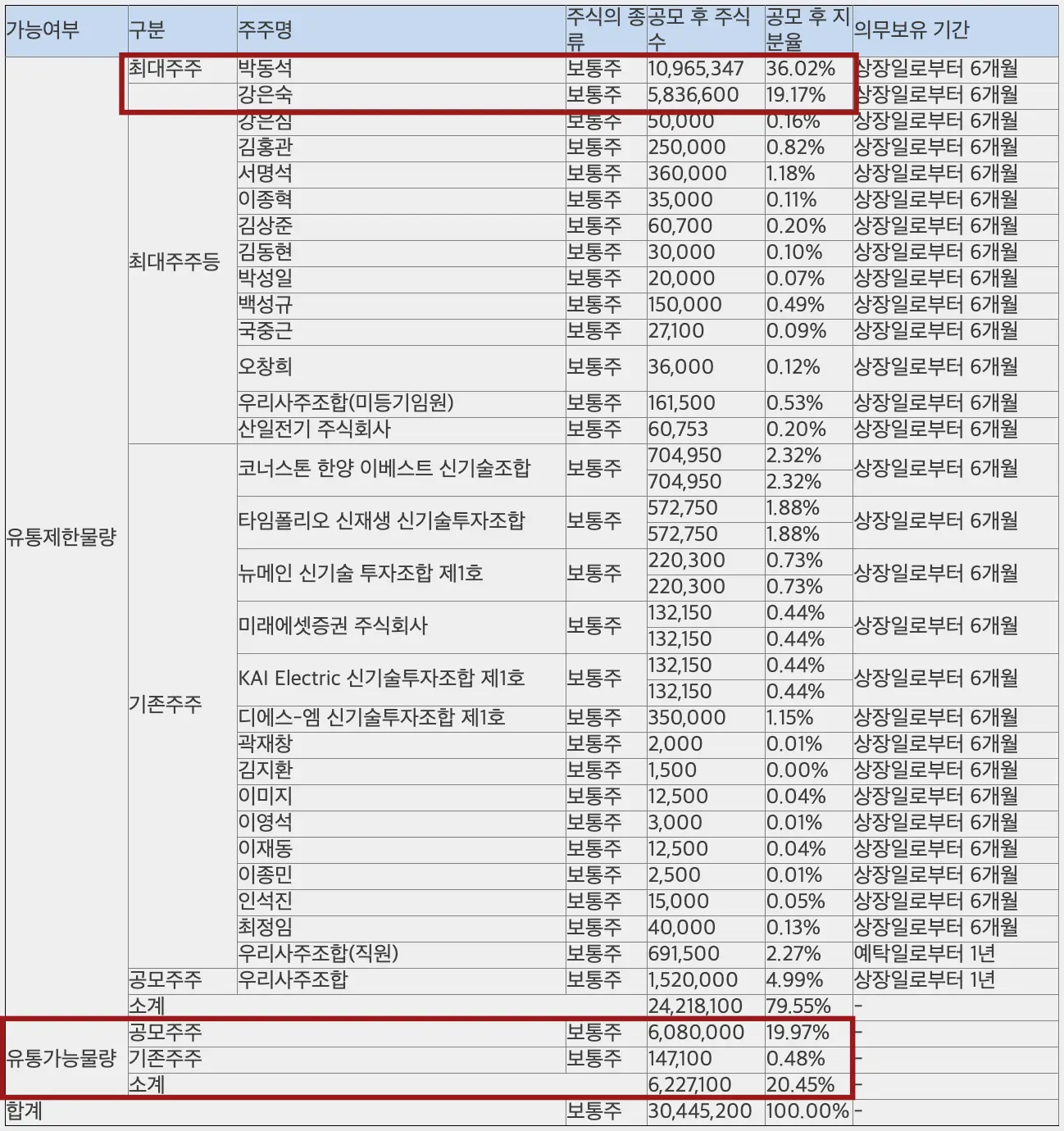 산일전기 공모 후 유통물량