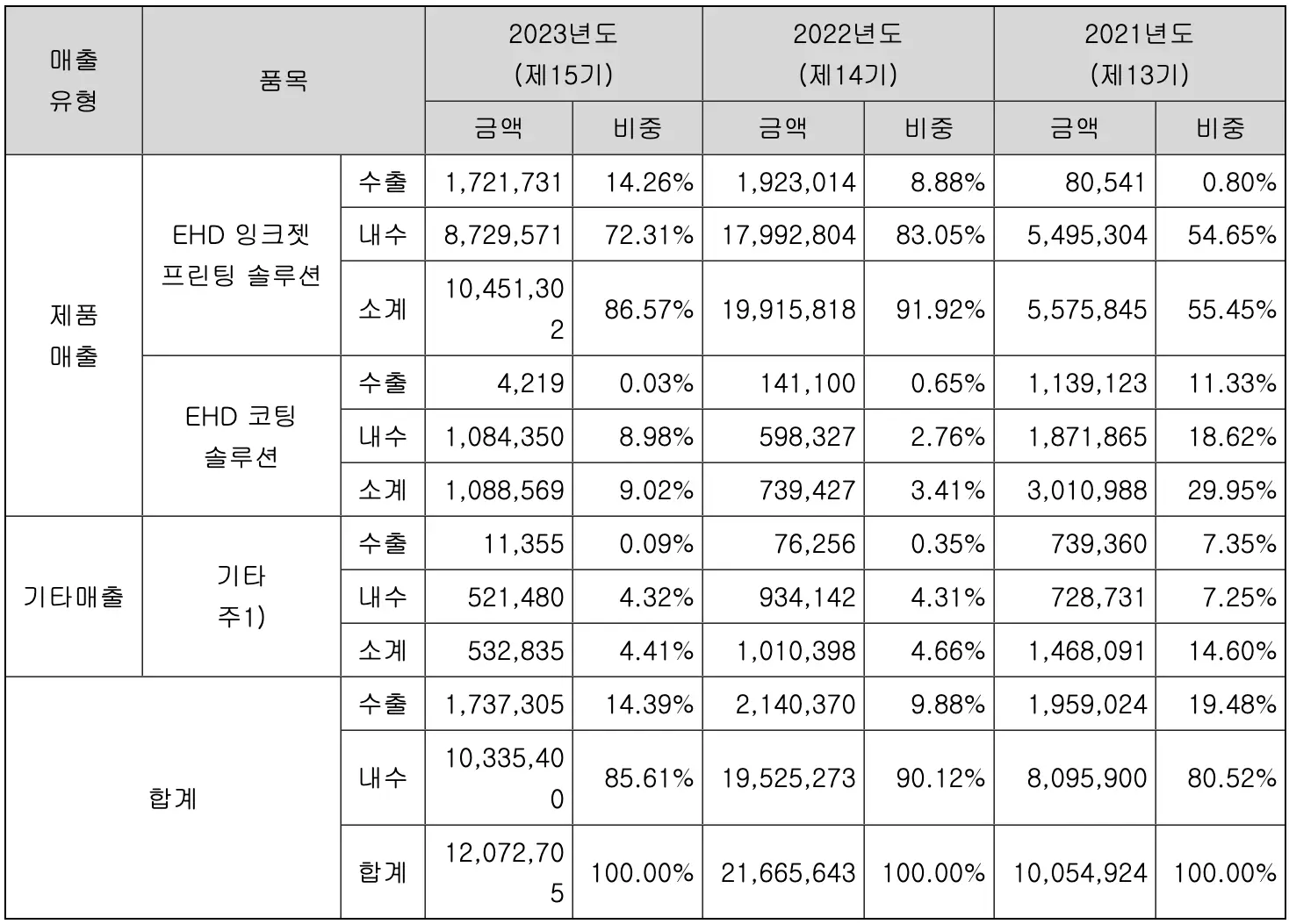 엔젯의 사업분야는 EHD 잉크젯, EHD 코팅이 주요 매출로 이루어지고 있습니다.