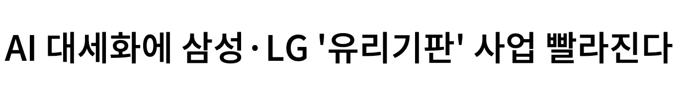 그간 사용해 오던 유기 소재 기판은 향후 급증하게 될 AI데이터 처리량이 기하급수적으로 급증, 2030년 이후 유기 소재기판이 2.5D/3D (반도체 주변 고대역폭 메모리 등을 상호 배치 연결 필수 기술)로 트래지스터 수 확장을 감당하기 어려울 것이라는 기술적 한계를 맞이하게 됩니다.