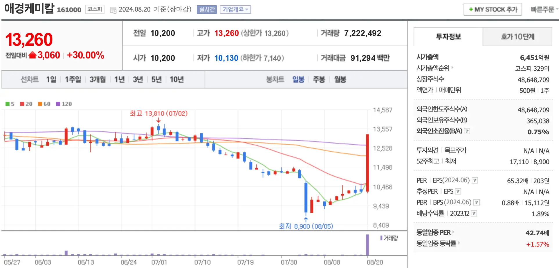 애경케미컬은 석유화학 및 화장품, 생활용품 등 다양한 생필품을 제조 판매하는 기업으로 에이케이켐텍과 합병, 가소제, 합성수지 및 생활화학, 바이오 &에너지부분 사업을 영위하고 있습니다.