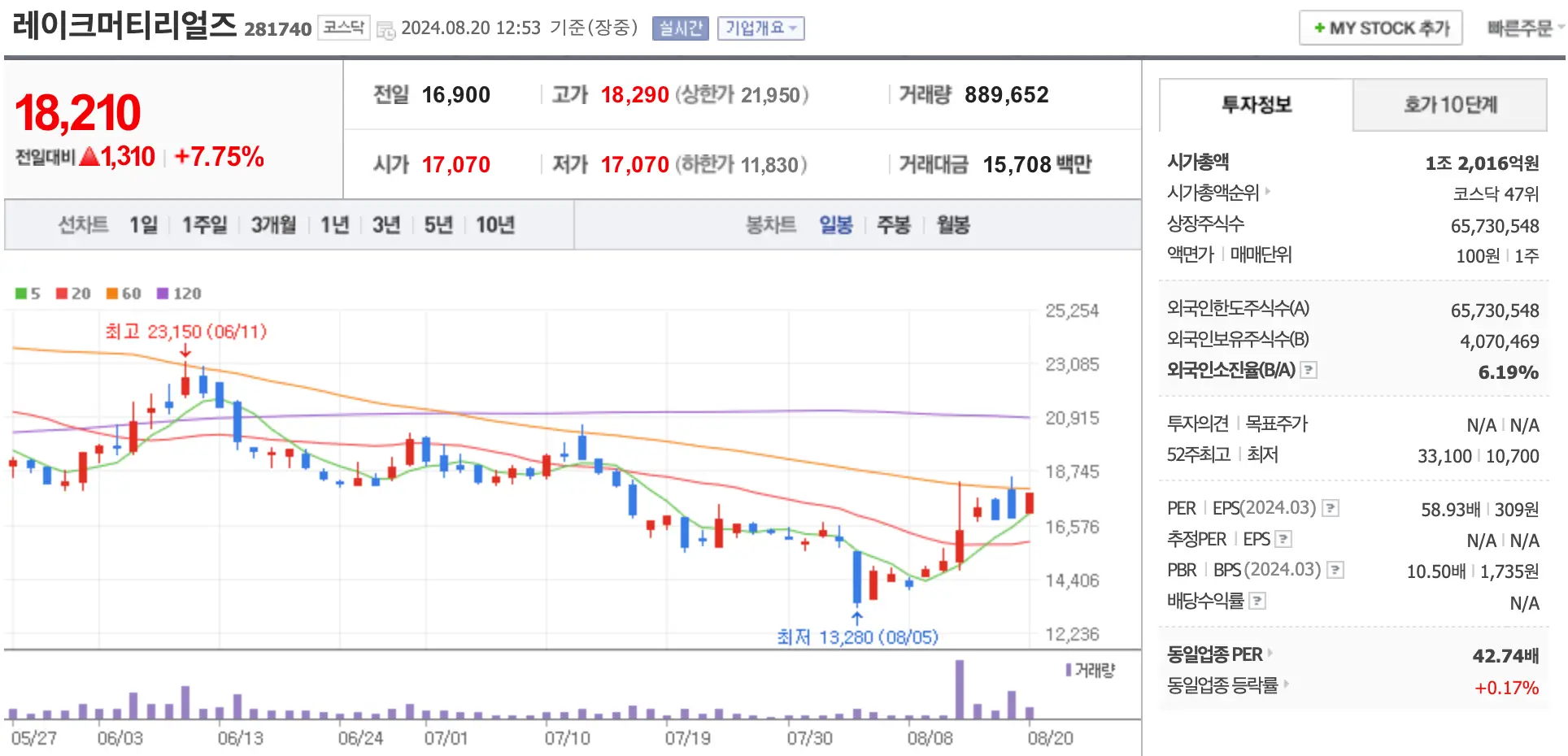 특히 레이크머티리얼즈는 특허가 많은 기업으로 황화리튬 개발 특허까지 가지고 있어 전고체 배터리 개발에 한 발 더 다가선 기업입니다.