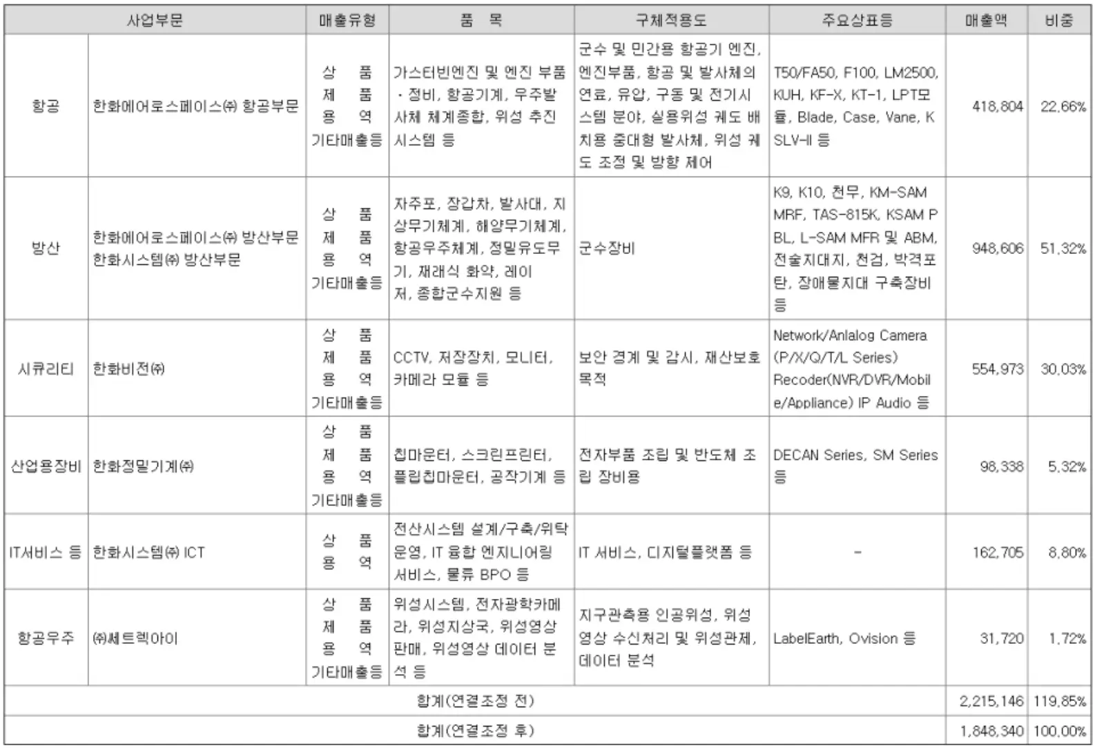 방사제품에 들어가는 부품회사인 한화시스템의 한화디펜스가 제조하는 K9 자주포, 천궁등에 사용되는 사격통제시스템 역시 한화시스템을 통해 제작됩니다.