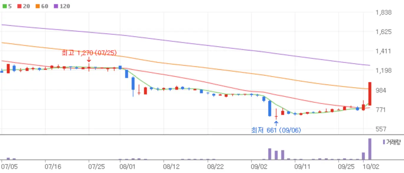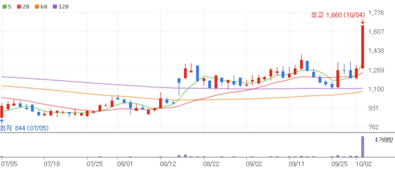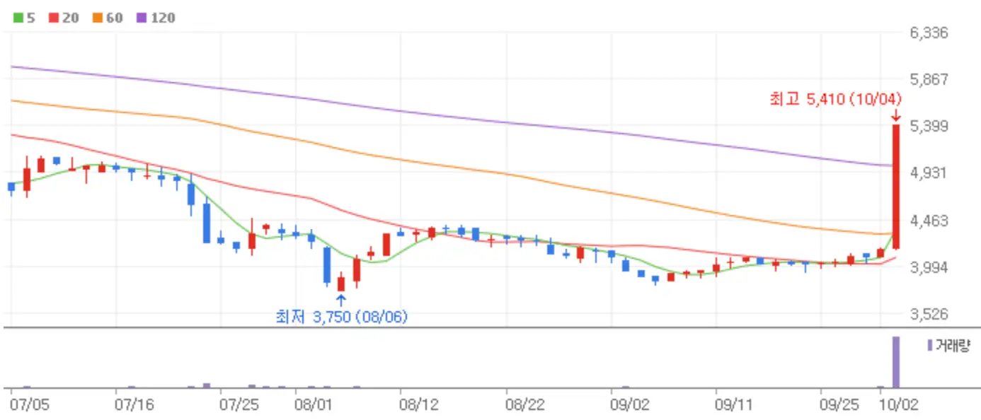 징검다리의 연휴 이후 개장한 금요일장은 전통적으로 하락하기 나름이죠. 오늘은 그간의 하락의 끝맺음을 하듯 코스피와 코스닥이 일제히 빨간불을 켠 하루였습니다. 오랜만에 만난 양시장 붉은빛으로 물들인 10월 4일 오늘의 상한가 종목분석에 들어가도록 하겠습니다.