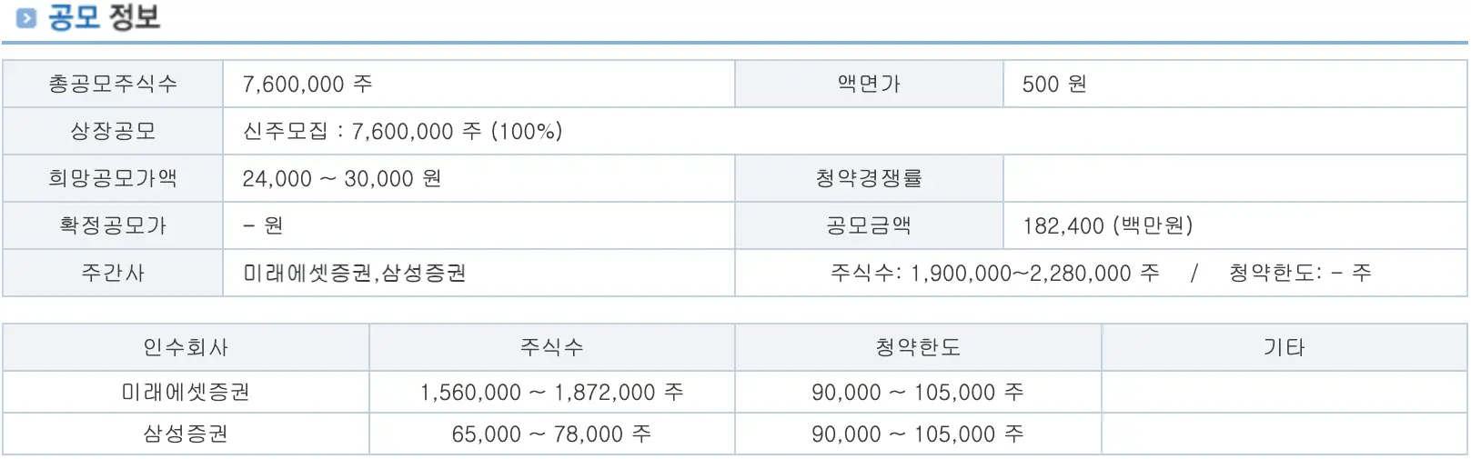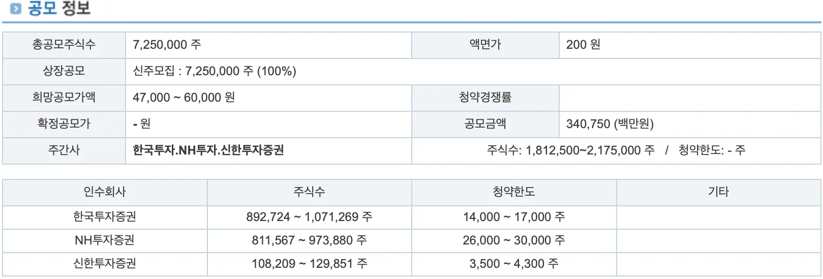 | 종목 | 공모주일정 | 희망공모가 | 주간사 |