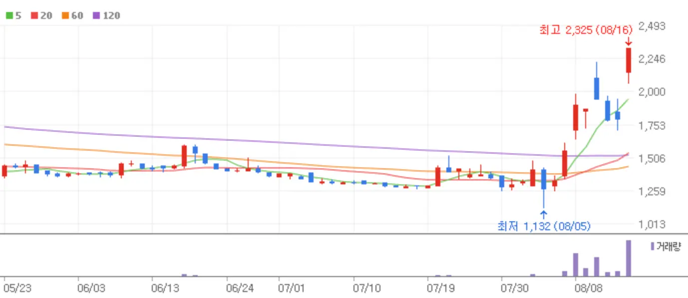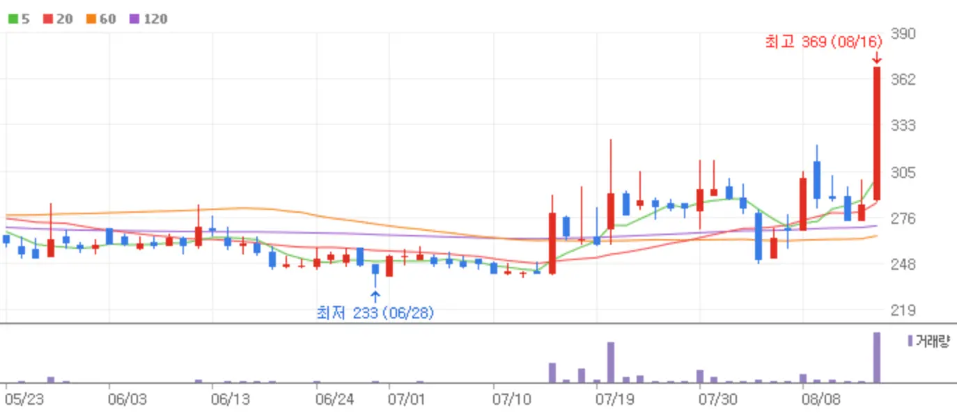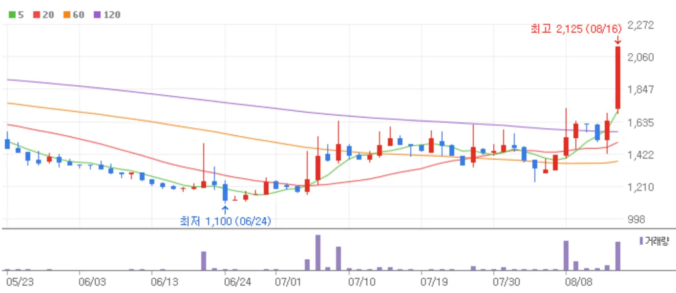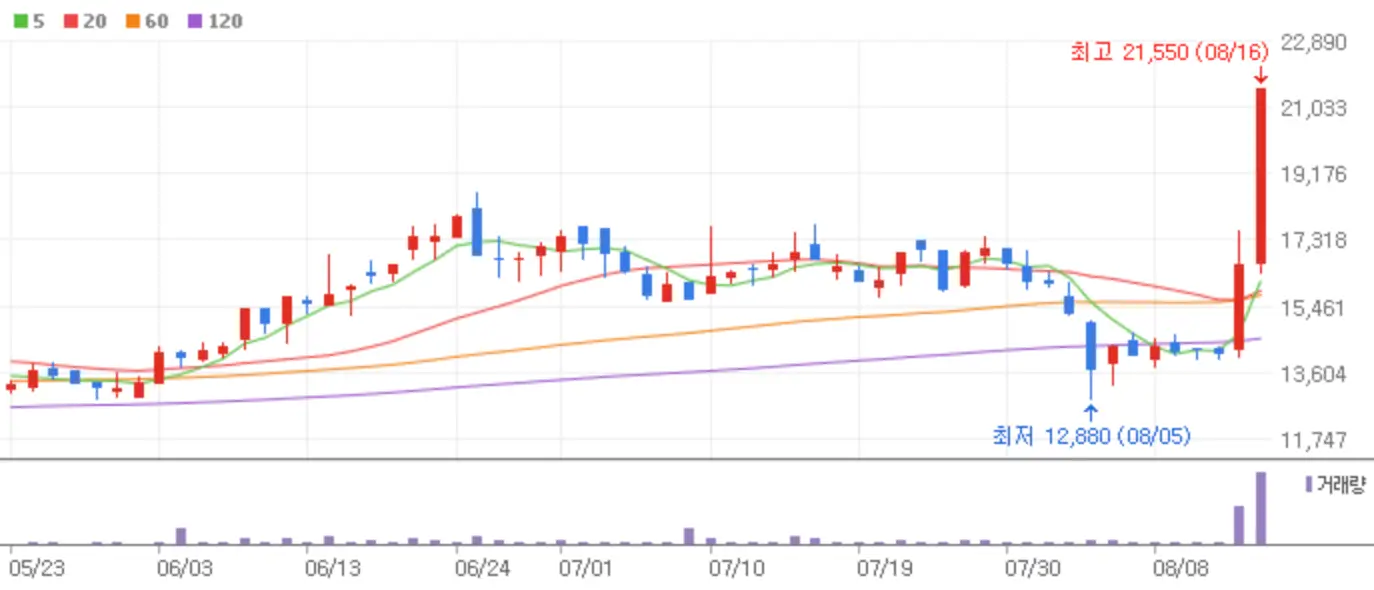 어제 광복절로 주식시장은 하루 쉬었지만 그사이 많은 이슈들이 뭉쳐 강력한 상한가 종목을 분출한 하루였습니다. 지금부터 8월 16일 새로운 스타로 떠오른 상한가 종목과 그에 따른 시장의 반응 등에 대해 알아보겠습니다.