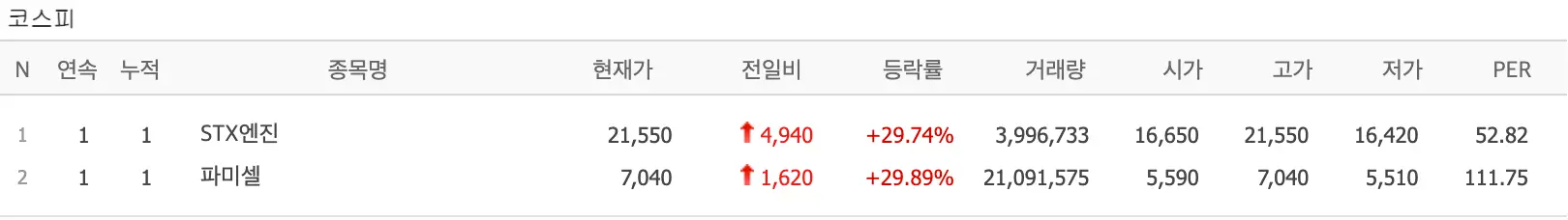 10% 이상 상승종목