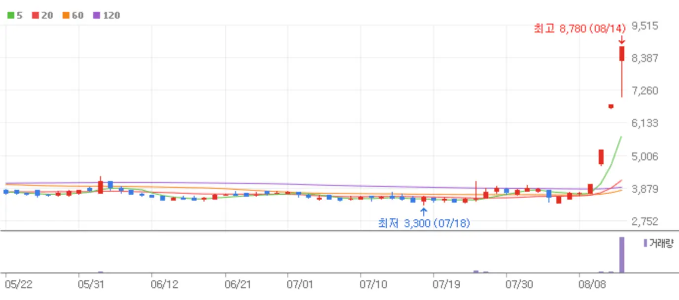 기업 상황이 좋아진다 해도 어쨌든 테마주의 성격이 강한 종목입니다. 언제 터질지 모르는 폭탄과도 같은 종목이죠.