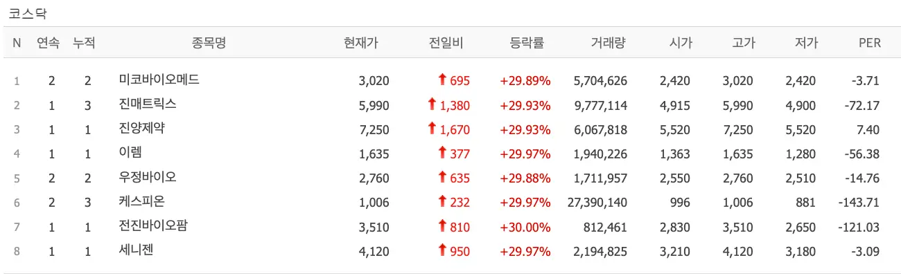 미코바이오메드 / 진매트릭스 / 진양제약 / 이렘 / 우정바이오 / 케스피온 / 전진바이오팜 / 세니젠