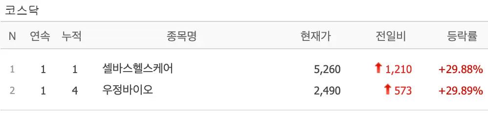 외국인의 대량매집으로 인해 오랜만에 코스피종목에서 상한가 종목이 2개나 나왔는데요 오늘 15% 이상 상승한 종목에서는 이수스페셜티케미컬과 애경케미컬, 에스피소프트, 이렘, 우정바이오 등이 상한가에 안착했고 15% 이상 상승한 종목으로 총 17 종목이 배출되었습니다.