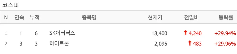 하이트론은 항암제 개발 참여 소식과 함께 3 연속 상한가에 안착했습니다.