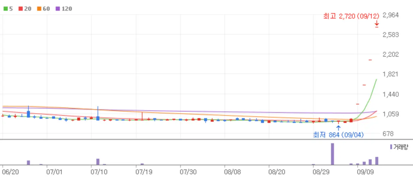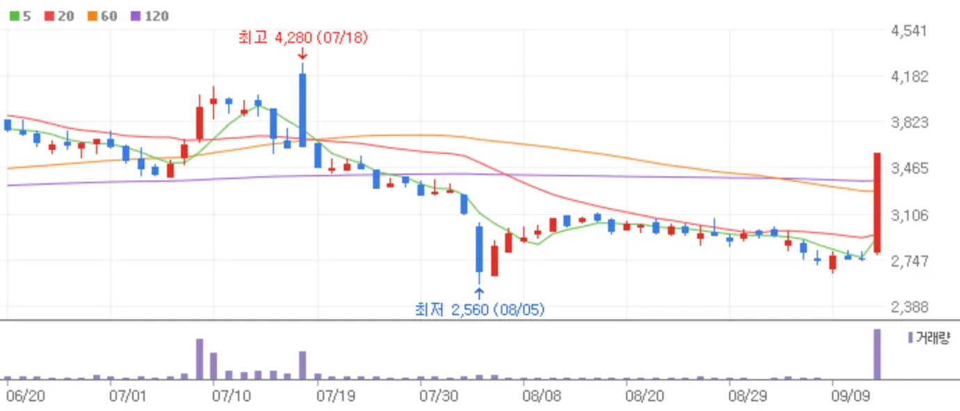 씨이랩은 AI영상분석 전문기업으로 지난 9월6일 엔비디아 옴니버스 기반의 디지털 트윈 플랫폼 구축 계약을 체결했다는 소식으로 상한가에 안착했습니다.