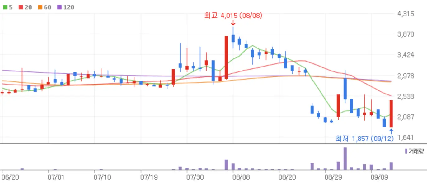 살얼음 같던 주식시장은 오전 잠깐의 상승을 보인 후 다시 한번 주저앉는 모습을 보였습니다. 9월의 저주답게 코스피, 코스닥 모두 하락의 늪에서 빠져나오지 못하고 있는데요 9월 11일 날 화려