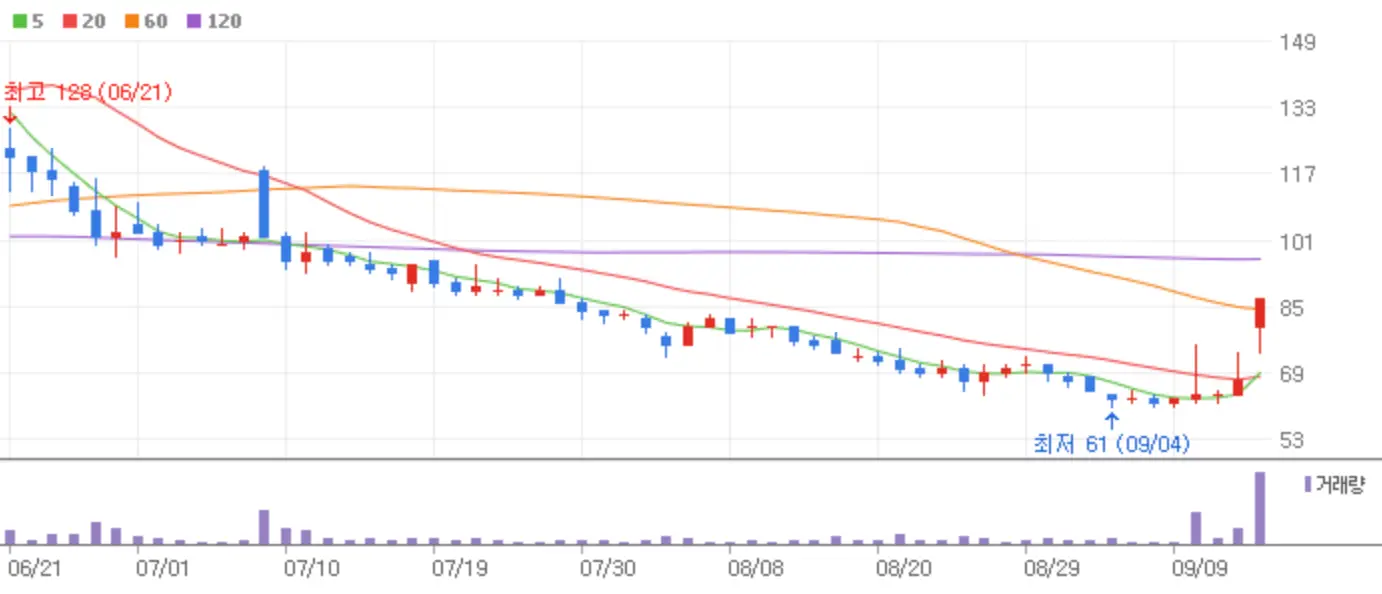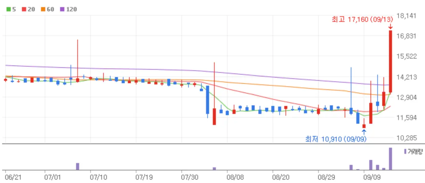 금리인하의 호재를 앞둔 9월 13일 코스피와 코스닥 시장은 보합으로 마감했습니다. 9월의 이벤트를 앞두고 눈치보기 장세가 이어졌는데요 9월 13일 상한가에 안착한 종목들에 대해 알아보도록 하겠습니다.