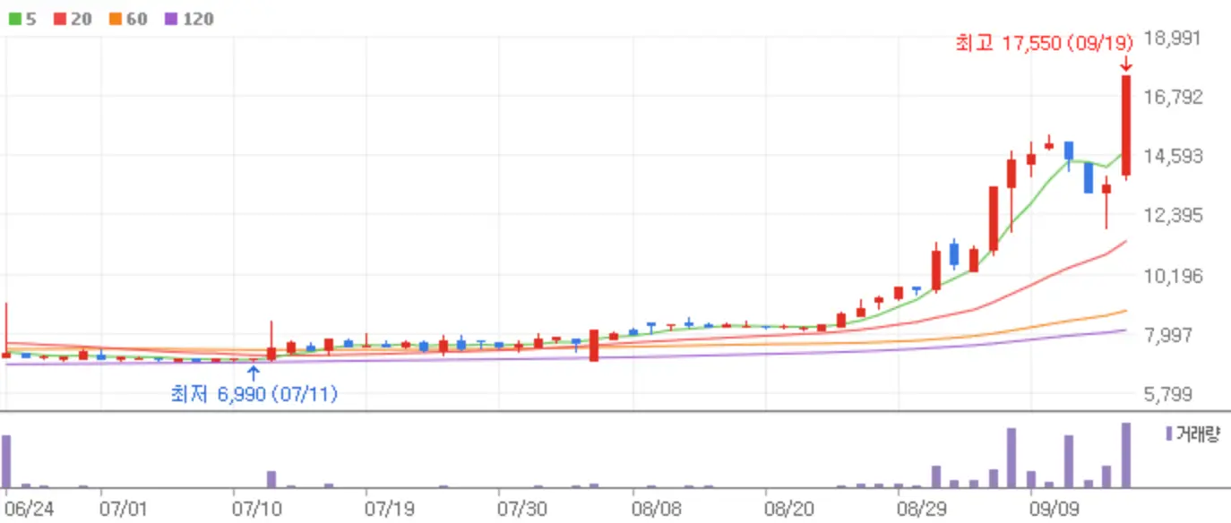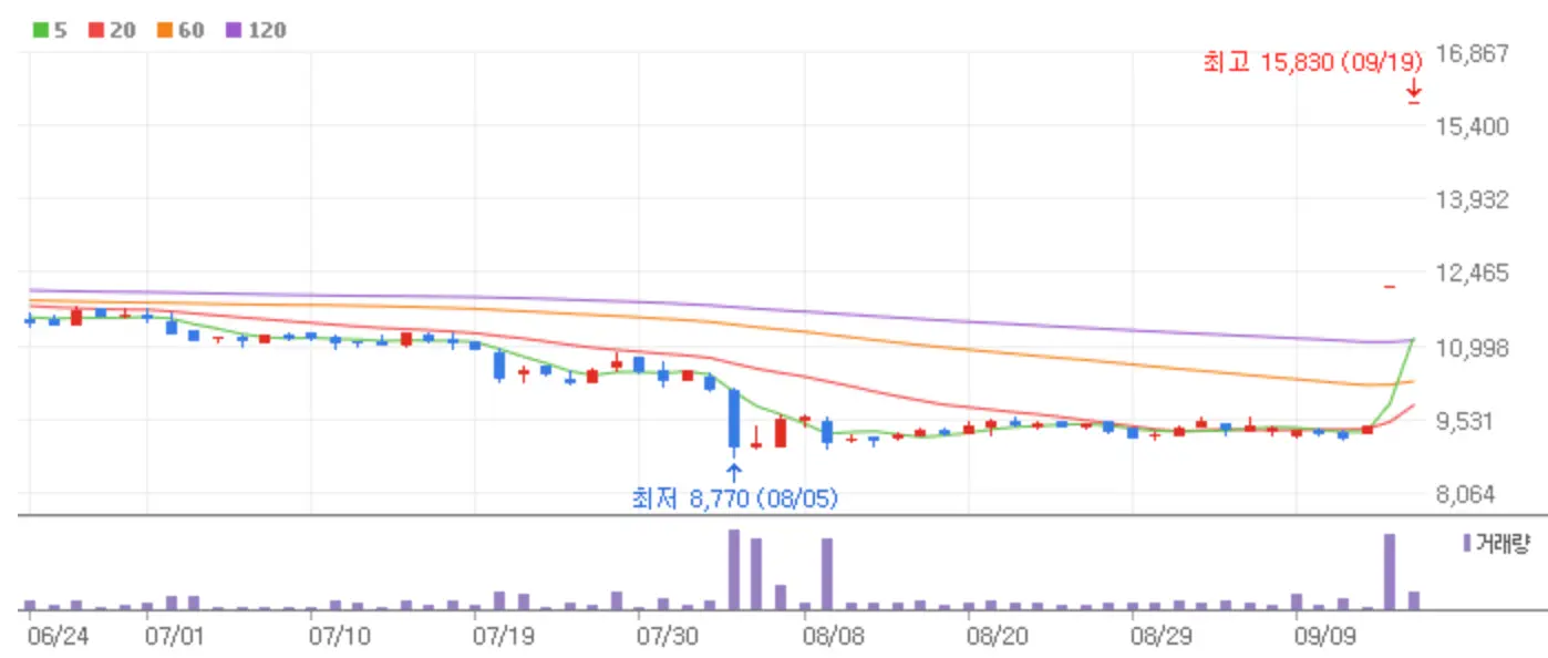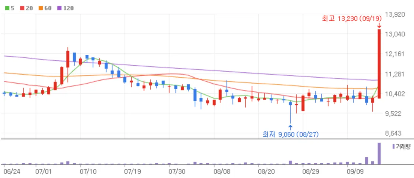 금리인하의 호재를 앞둔 9월 13일 코스피와 코스닥 시장은 보합으로 마감했습니다. 9월의 이벤트를 앞두고 눈치보기 장세가 이어졌는데요 9월 13일 상한가에 안착한 종목들에 대해 알아보도록 하