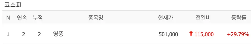 영풍정밀 역시 고려아연의 지분확보를 위한 영풍의 백기사로 등장, 고려아연에 대해 공개매수에 나서며 상한가에 안착했습니다.