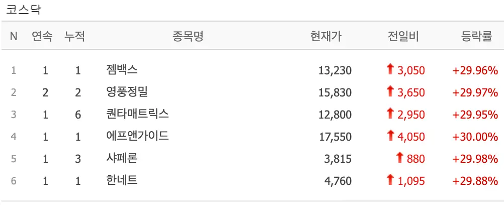 오늘의 상한가 분석