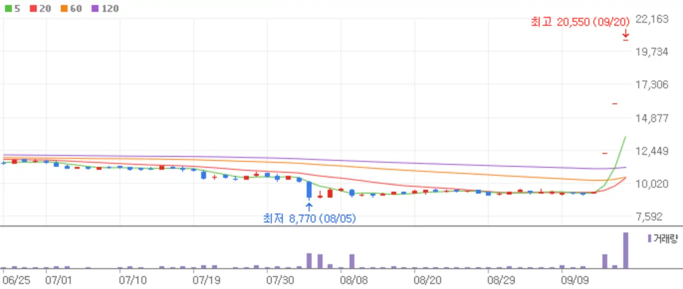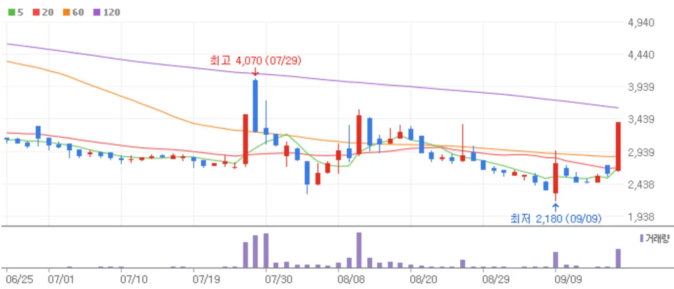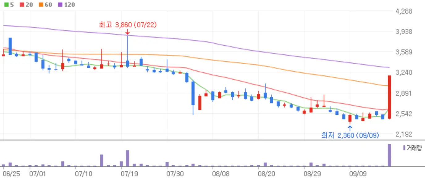 오랜만에 코스피와 코스닥 함께 상승한 장이었습니다. 삼성전자의 하락으로 비록 코스피는 2,600선 돌파에는 실패했지만 금리인하의 훈풍으로 인한 양시장의 연말 랠리에 청신호를 켠 하루이기도 했습니다. 9월 20일 상한가를 기록한 종목에 대한 분석에 들어가 보도록 하겠습니다.