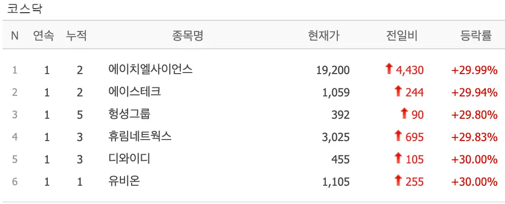 9월30일 오늘의 상한가 종목분석-에이치엘사이언스,에이스테크,헝셩그룹,휴림네트웍스,디와이디,유비온