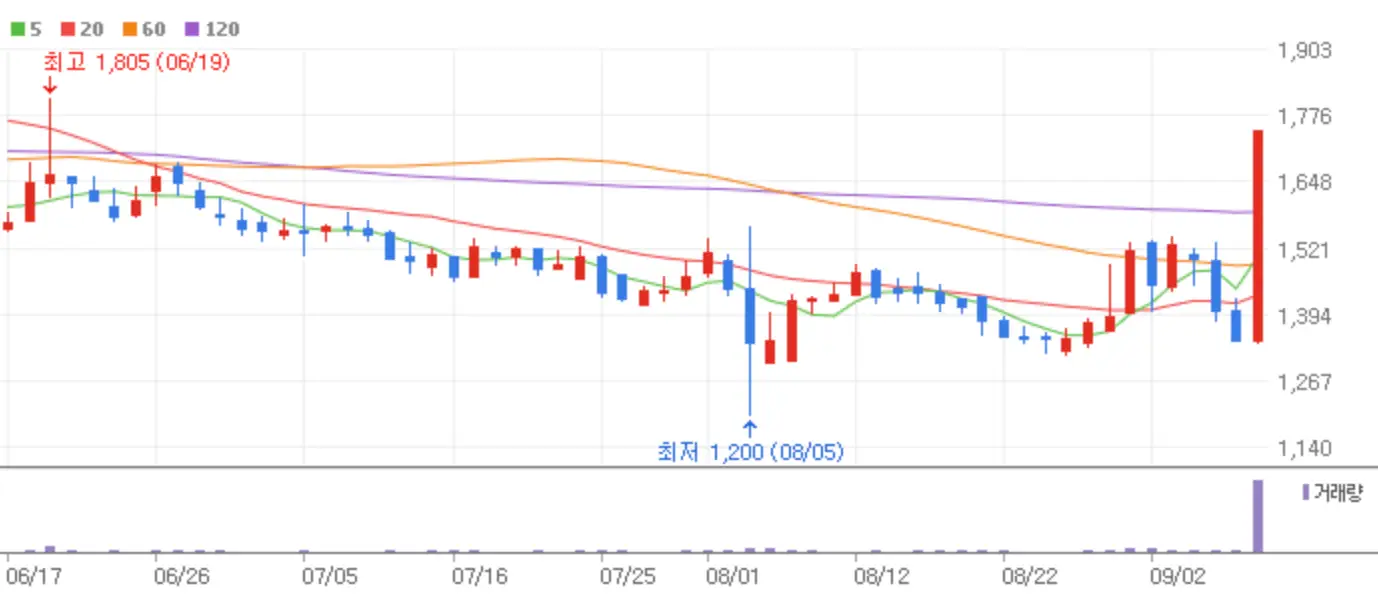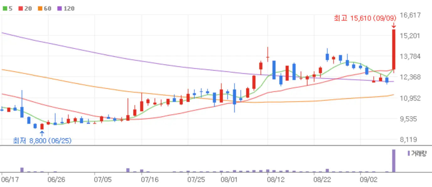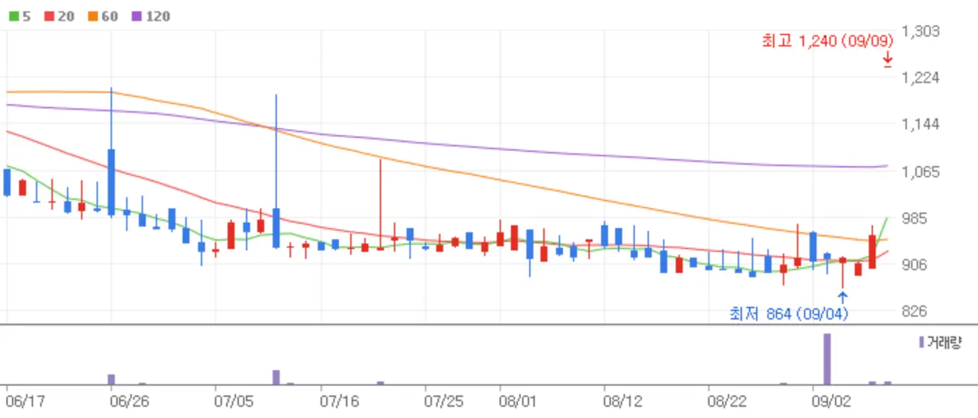 4일간의 하락을 마감 짓는 하루였습니다. 금투세이슈와 미국의 금리침체, 추석의 이슈가 그간 국내증시를 무겁게 짓눌렀는데요 5 일반에 반등에 성공한 9월 9일 오늘의 상한가 종목분석에 들어가 보도록 하겠습니다.