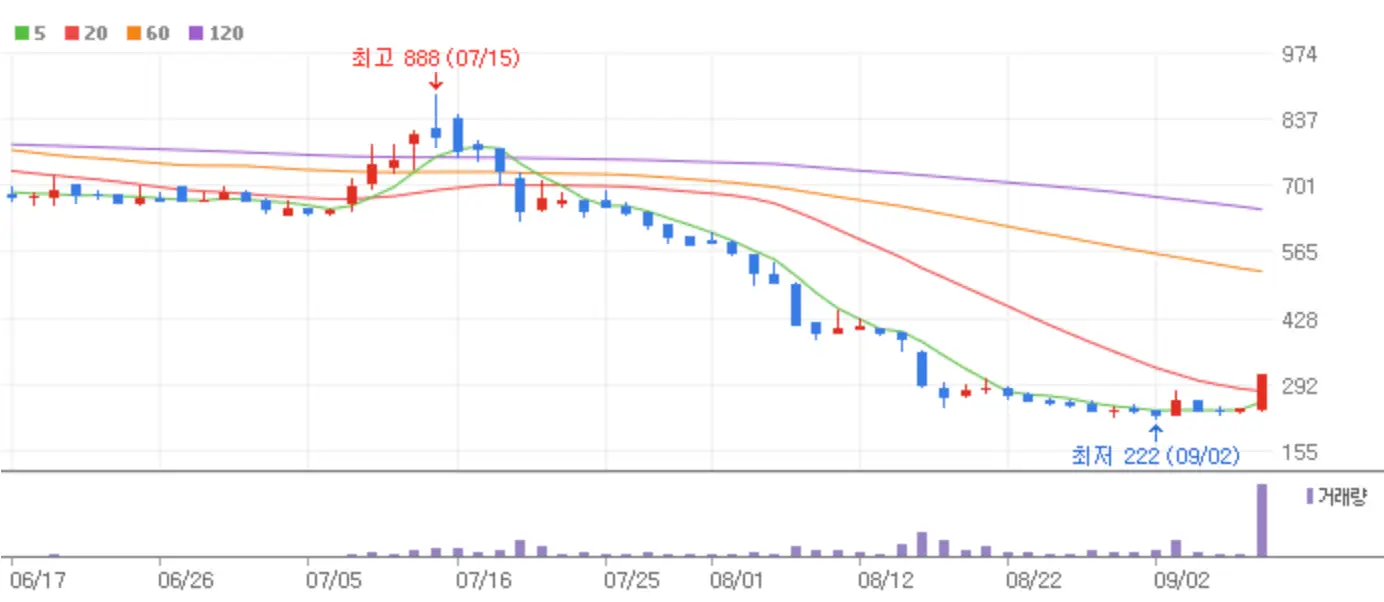 이후 9월 5일 금융채권자 협의회를 통해 워크아웃 개시가 결정되며 경영 정상화에 대한 기대감으로 어제에 이어 오늘 상한가에 안착했습니다.